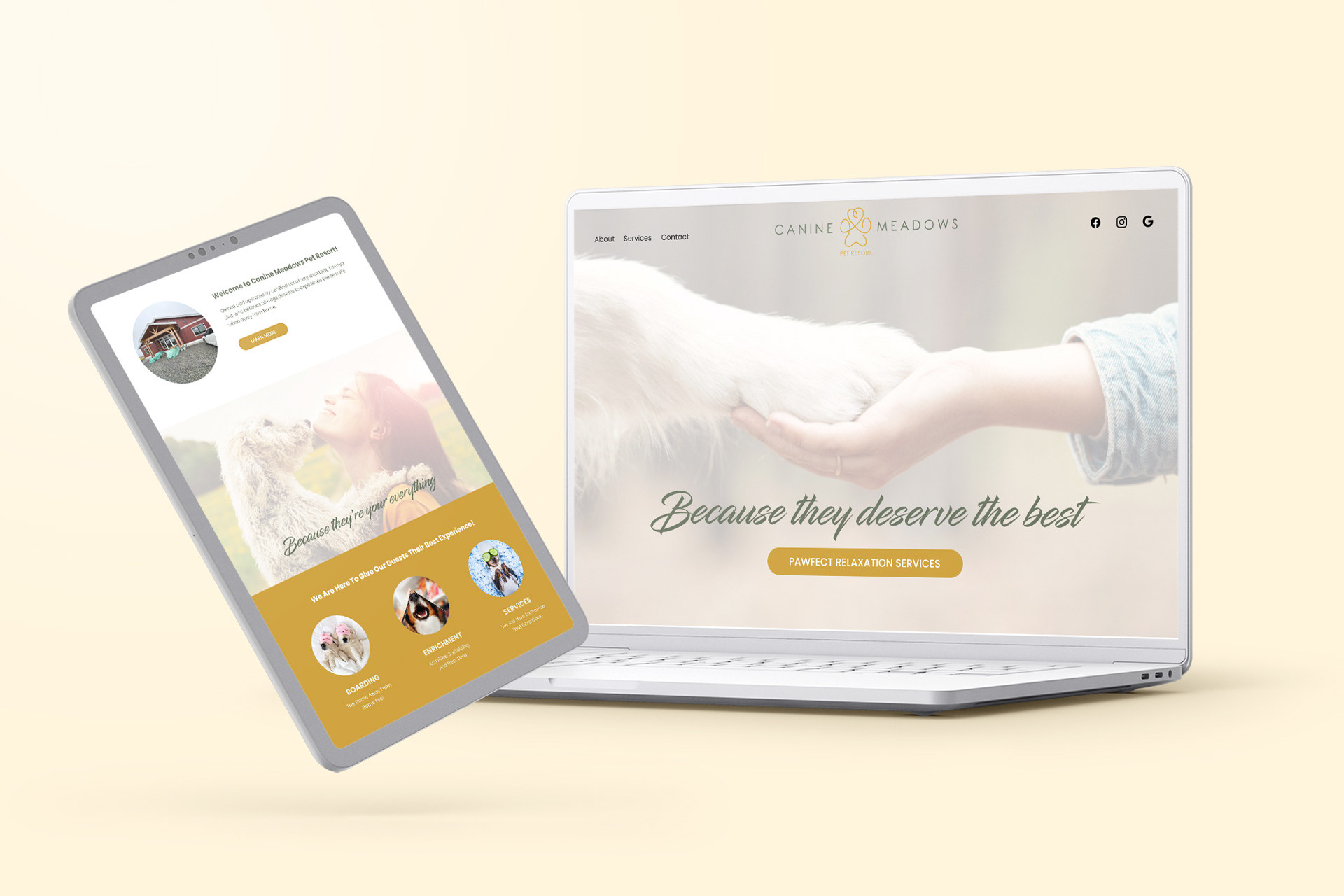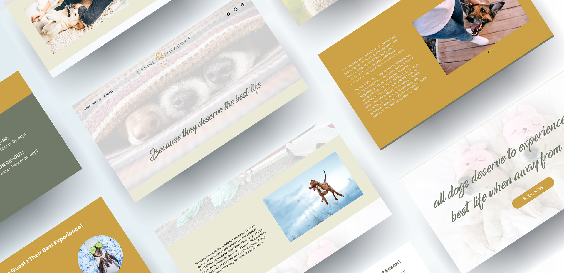 Canine Meadows is a pet resort, located in Vancouver, BC. The branding team created their visual identity initially for the client. To showcase an expansion of identity and investment to the company, I was contracted to create this website concept.
